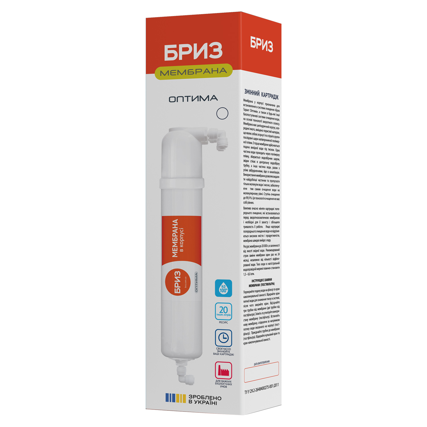 Производительность картриджа Бриз Мембрана Оптима (в корпусе) до 150 галлон в сутки (до 568 литров всутки). Ресурс обратноосмотической мембраны не более 20000 л (рекомендуемый срок замены один раз в 2 года) при соответствии качества подаваемой на систему очистки воды требованиям к питьевой воде в соответствии с действующим законодательством (ГСанПИН 2.2.4-171-10).